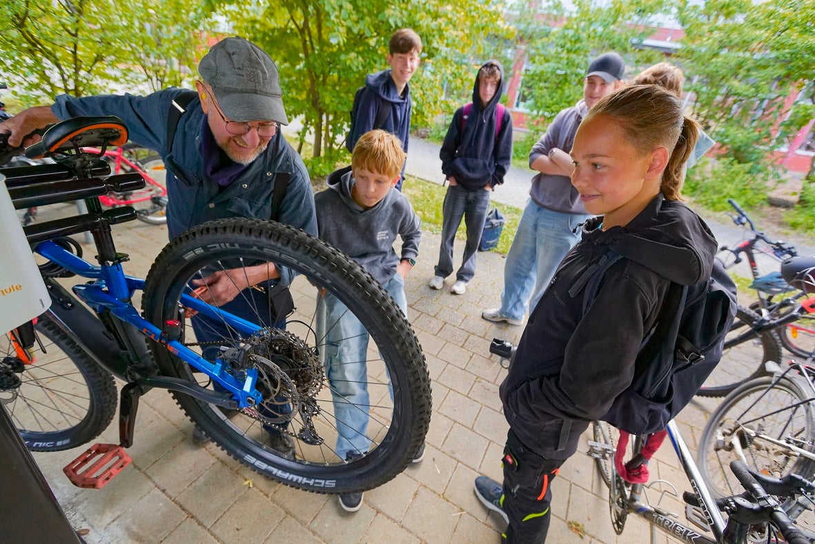 Schüler:innen dann, zum Beispiel auf dem Energiefahrrad, selbst aktiv werden. Der Weg zum möglichst klimaneutralen Energieverbrauch stand dabei im Mittelpunkt des Workshops.
