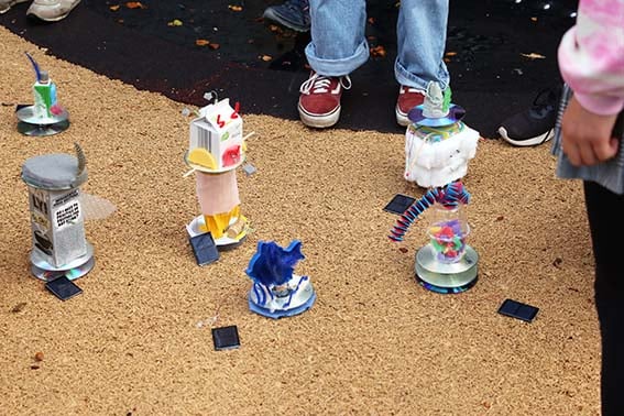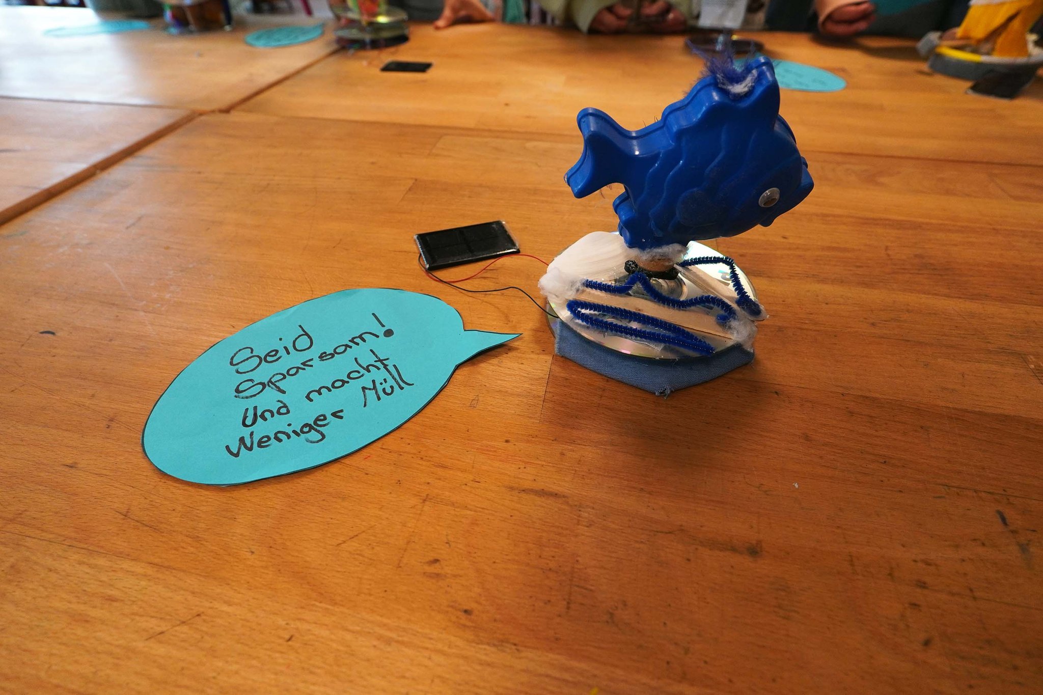 Danach durften die Schüler:innen selbst kreativ werden und Blumen und Unterwasser-Tiere basteln. Diese wurden im Anschluss im Foyer ausg