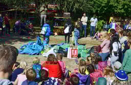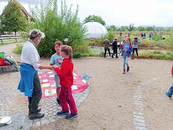 Wir (Frau Wehnert und die 4. Klasse) waren auf dem Maienbühl unterhalb vom Maienbühlhof im Wald bei der Grillhütte. Dort wurde gerade von den Waldarbeitern ganz viel japanischer Knöterich gerodet, was gleich zu einem spannenden Gespräch über Neophyten führte. Die Kinder mussten als erstes eine Minute ganz still sitzen und zählen, wie viel verschiedene Vogelstimmen wir hören konnten: sechs mindestens! Danach schauten wir uns die Bäume in der Umgebung an und bestimmten Buche, Eiche und Ahorn. Im Gespräch (und nicht nur durch mich referierend) trugen wir zusammen, warum Bäume nicht nur für die Tiere und Menschen, sondern auch fürs Klima wichtig sind. Als Höhepunkt bekam der Reihe nach jedes Kind die Augen verbunden, wurde in den Wald geführt und musste nun blind einer Schnur folgen, die kreuz und quer durch den Wald gespannt war, mal ganz tief am Boden, mal recht weit oben, mal über Äste kletternd, mal drunter durch kriechend oder ganz um einen Baum herumgehend. Das haben alle geschafft und fanden es ganz toll - fast so toll wie die nachfolgende Spielezeit im Wald, wo sich manche fast "verlaufen" haben. Ein gelungener Tag, der nach Wiederholung ruft.
