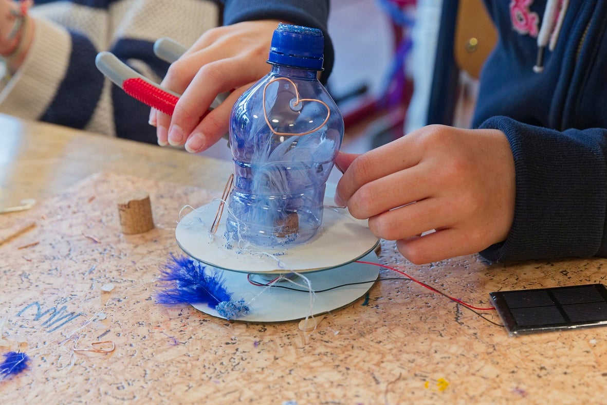 Beim PET-Flaschen Workshop wurden die Schüler:innen über den Müll-Konsum aufgeklärt und insbesondere auf die Plastikproblematik aufmerksam gemacht. Anhand von Bildern wurde gezeigt, was man alles