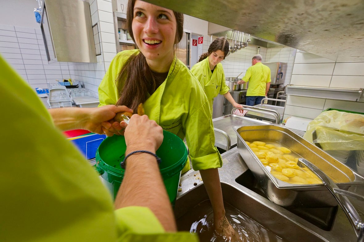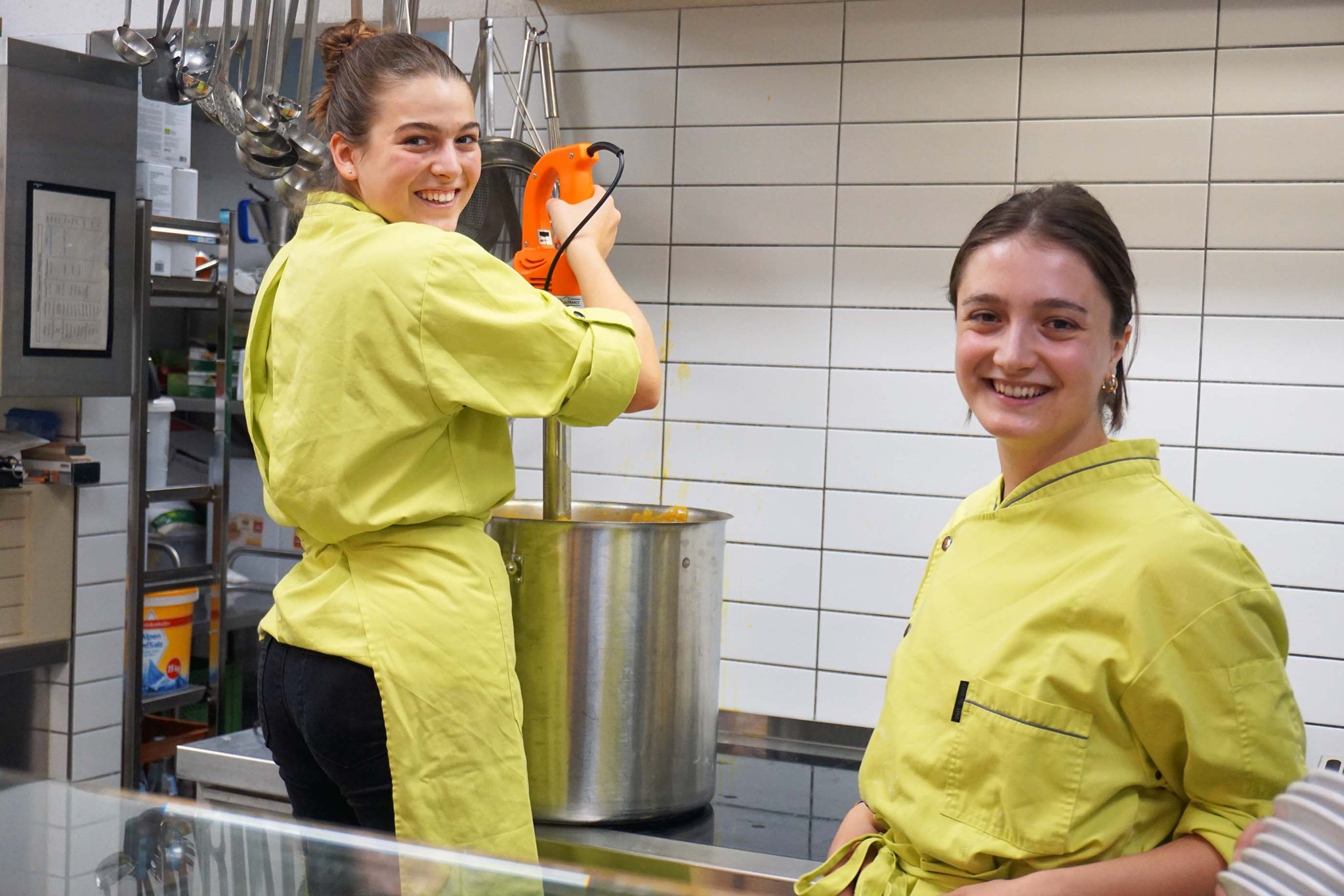 Heute helfen die Schüler:innen und Lehrer:innen beim Kochen für die ganze Schulgemeinschaft!