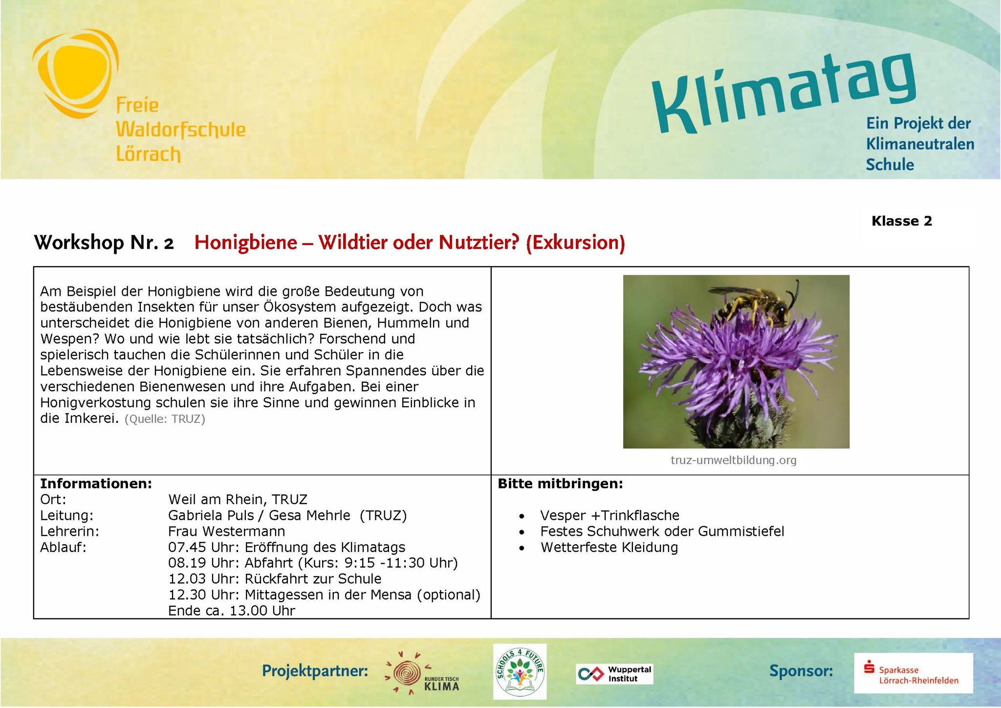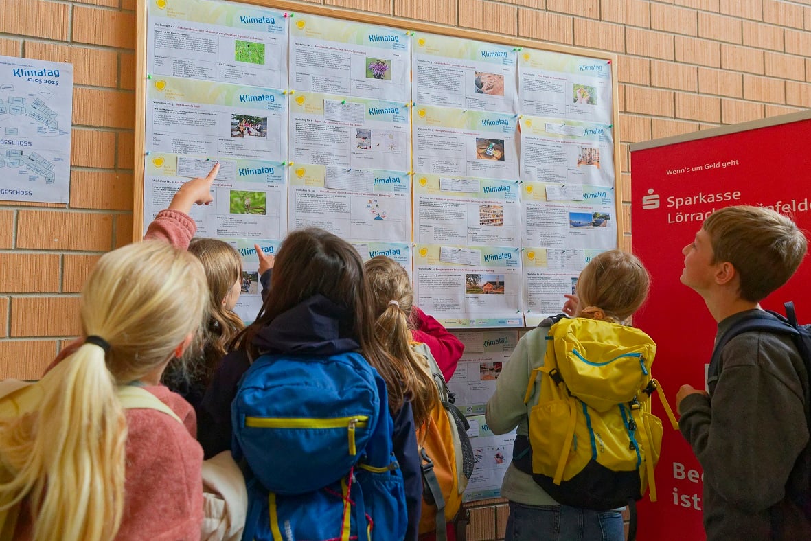 Umweltbildung ist ein wesentlicher Bestandteil unseres Klima-Konzepts. Daher hat unser Klimateam den Klimatag ins Leben gerufen, ein Projekttag, bei dem sich alles rund um das Thema Kimawandel und Nachhaltigkeit dreht. Hier können die Kinder und Jugendlichen aller Jahrgänge und Klassen in einer Vielzahl von Workshops, die u.a. von Fachexpert:innen geleitet werden, über die Phänomene und Hintergründe des Klimawandels lernen und bei Maßnahmen zum Naturschutz und zur CO2-Reduzierung selbst aktiv werden.