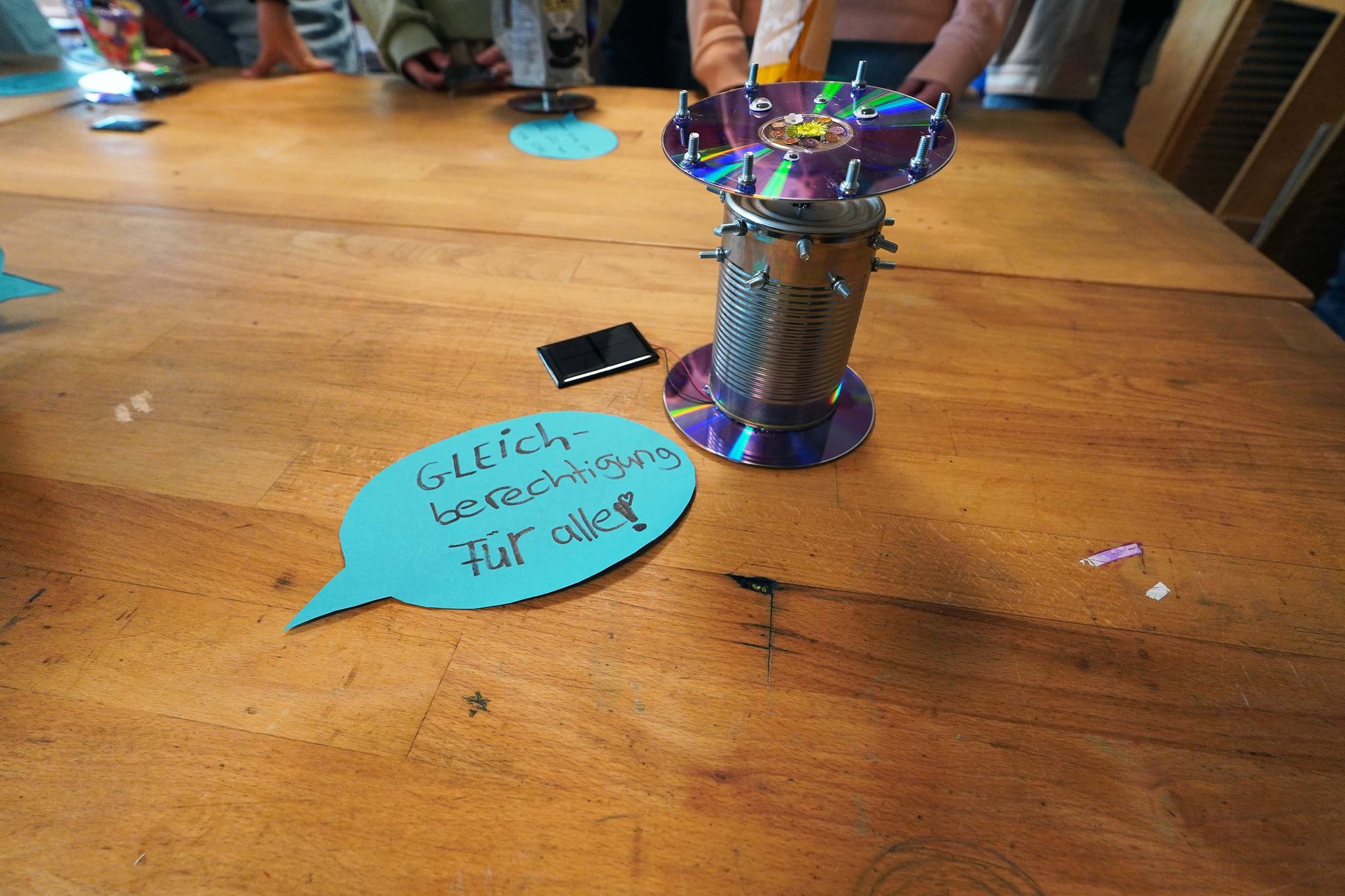 Ziel des Projekts, unter der Leitung von Frau Tupin, war es, Schüler:innen zu zeigen, wie sie im Alltag durch einfache Maßnahmen CO₂ einsparen können – und damit aktiv zum Klimaschutz beitragen. Im Mittelpunkt stand das Basteln einer sogenannten „Klimawaage“. Hier wurden Pappdosen mit verschiedenen Aufschriften – etwa „kalt Händewaschen“, „Elektroauto fahren“, „vegane Ernährung“, „lokales Essen“ oder „To-Go-Becher sparen“ beklebt und mit unterschiedlich viel Sand befüllt, je nach dem wie „schwer“ bestimmte Verhaltensweisen in Bezug auf den CO₂-Ausstoß sind. So konnten die Kinder selbst ausprobieren, vergleichen und erkennen, welche alltäglichen Entscheidungen eine größere oder geringere Auswirkung auf das Klima haben. Die einfache, aber anschauliche Methode sollte nicht nur Wissen vermitteln, sondern vor allem Hoffnung machen, nach dem Motto „Kleinvieh macht auch Mist“.
