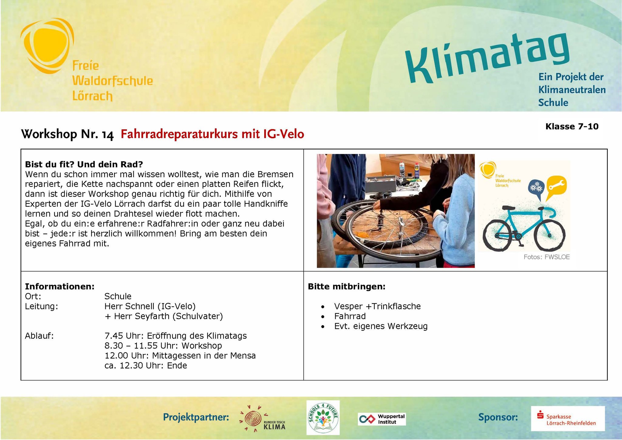 Wir haben eine neue Rad-Service-Station mit Luftpumpe und verschiedenen Tools. Diese wurde am Klimatag gleich eingesetzt und gecheckt. Beim Fahrradreparaturkurs lernten die Schüler:innen, unter Anleitung von Herrn Schnell von der IG-Velo Lörrach und Herrn Seyfarth, einem engagierten Schulvater, wie sie die Werkzeuge nutzen und damit ihr eigenes Fahrrad wieder zum Laufen bringen können. Auf diese Weise lernen die Schüler:innen auch was Nachhaltigkeit bedeutet und warum der Bedarf an neuen Produkten reduziert werden muss, um die Umwelt zu schützen. Da außerdem viele der Schüler:innen mit dem Fahrrad zur Schule kommen, ist es hilfreich, wenn sie selbständig in der Lage sind ihre Fahrräder zu reparieren.