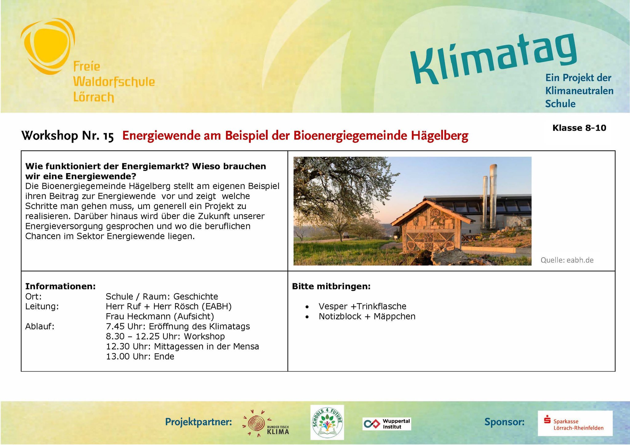Mehr als nur ein Vortrag zur Energiewende. Hier beschäftigten sich die Teilnehmer: innen spielerisch und interaktiv mit den Möglichkeiten in einer grüneren Zukunft. Dies wurde am Beispiel der Bioenergiegemeinde Hägelberg, repräsentiert durch Leiter des Projekts Herrn Ruf und Herrn Rösch, dargestellt. Die Idee ist, die kommenden Generationen zur Tatkräftigkeit zu motivieren und zu inspirieren. Sie wünschen sich zudem, ein internationales Vorbild zu setzen und den Gedanken einer nachhaltigeren Zukunft in der Jugend zu verbreiten.